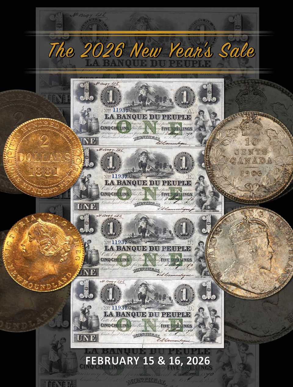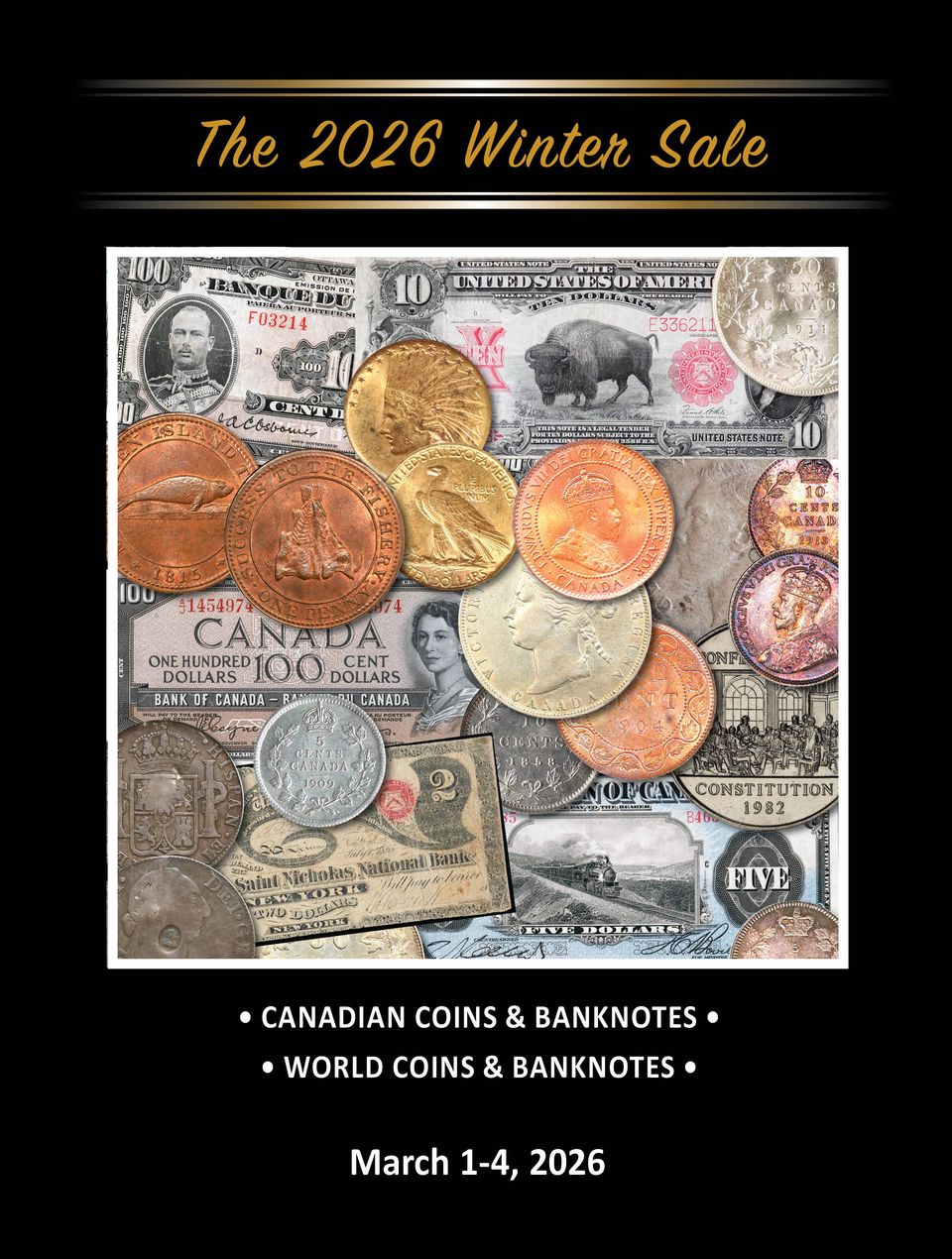 This auction is highlighted by an outstanding selection of Canadian coins and banknotes, as well as an extensive offering of world coins and world banknotes.