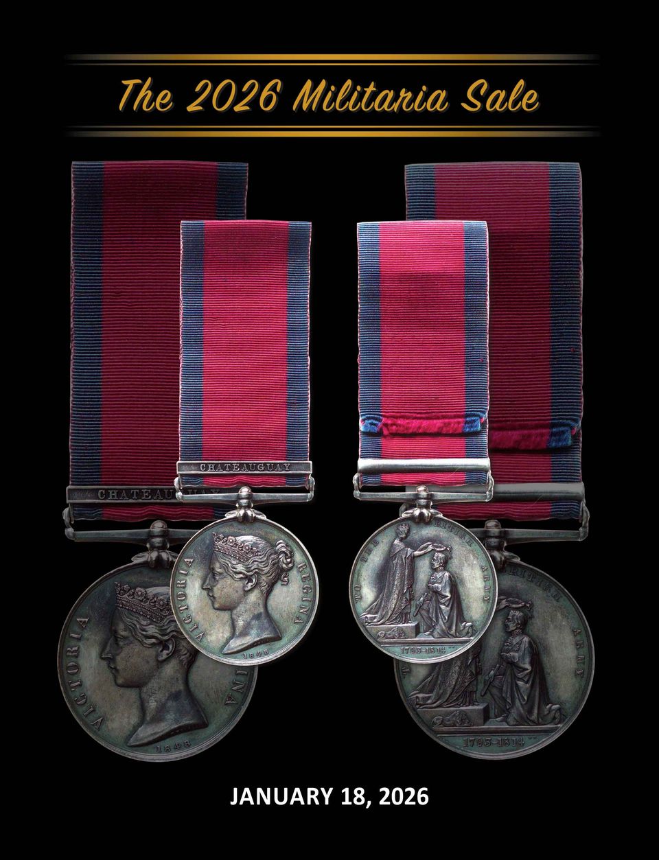 Highlighting the Sale is Lot #1 Canadian Military General Service Medal w/Chateauguay clasp to “A. DUMON, LIEUT CANAD'N MILITIA.” Lot #2 Canadian Military General Service Medal w/Chateauguay clasp to “C. BROCK SERJT CANAD'N MILITIA”. Lot #6 Canadian ...