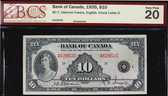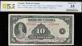1935 $10 BC-8 F056111 PMG Choice Uncirculated-63. A Very scarce french text example. It is bright with good colours.