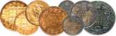 1911-12 Gem Specimen Set With Gold, 1¢-$10 in Original Red Leather Case, From a Reported Mintage of Just Five Sets, ICCS Certified Specimen-64 to Specimen-66. An incredibly rare offering, the 1911-12 double dated specimen set is a classic and celebrated rarity, with a reported mintage of a mere five sets. Although it appears the reported mintage of five sets may be slightly conservative, the total amount of issued sets is still very few with the recipients of such sets being very selective. With many of the known sets being broken up and sold piecemeal over the years, a complete set still in the original box is a truly remarkable opportunity worthy of serious attention. The grades are as follows: 1¢ Gem Specimen-65 Red, 5¢ Superb Gem Specimen-66, 10¢ Superb Gem Specimen-66, 25¢ Gem Specimen-65, Gold Sovereign/1£ Near Gem Specimen-64, $5 Superb Gem Specimen-66, $10 Superb Gem Specimen-66. The one-cent piece possesses nearly full original mint red luster, highly desirable as such, while the silver issues share an original and nicely matched deep original tone. The three gold pieces possess incredible eye appeal, with their silky mint luster swirling throughout rich golden surfaces, the devices fully impressed with every miniscule detail showing. The ten dollar gold piece in particular has a beautiful light rim tone, which is most beautiful and highly original. This set is a once in a lifetime find and an incredible opportunity for any collector.